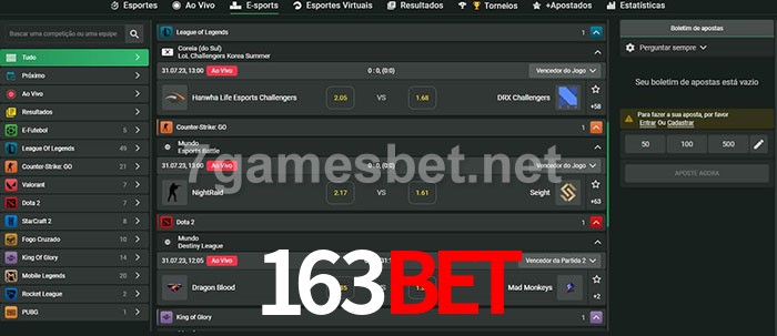 O 163bet oferece uma grande seleção de opções de apostas em e-sports com probabilidades competitivas